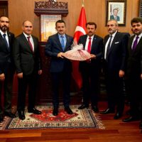 Bakan Pakdemirli’nin Büyükşehir Belediyesine gelişinde Büyükşehir Belediye Başkanı Fatih Mehmet Erkoç ve büyükşehir belediyesi bürokratları karşıladılar.