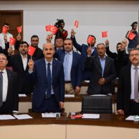 Bu operasyonun amacı bölgemizi teröristlerden temizlemek ve yurtlarından edilmiş Suriyelileri ülkelerine geri göndermektir. Bölgemizin istikrar, barış ve refahına karşı en büyük tehdit olan DAEŞ=PKK=PYD=YPG terör örgütlerinin bu yıkıcı faaliyetlerini sonlandırmak, yurtlarını zulüm, sürgün, baskı ve katliamla yitirmiş yüz binlerce Suriyelinin vatanlarına dönüşlerini sağlamak için düzenlenen Barış Pınarı Operasyonunu ve varılan mutabakatı, mutabakata uyulmaması halinde Barış Pınarı Harekâtının devam ettirilmesi yönündeki devletimizin kararlı iradesini Büyükşehir Belediye Meclisi olarak destekliyor, ordumuza muvaffakiyetler diliyoruz. Belediye Meclislerimiz, Kahraman Mehmetçiklerimizin yanındadır” ifadelerine yer verildi.Tüm meclis üyeleri Türk Bayraklarıyla okunan bildiriyi oy birliği ile kabul etti. Ardından gündem maddeleri ve komisyonlardan gelen raporların görüşülmesine geçildi.