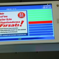 Otobüs hareket ettikten sonra Büyükşehir Belediyesi’nin bilgilendirme amaçlı hatırlatma, ilan ve duyuruları tekrar ekrana yansıyarak yolcular bilgilendiriliyor.