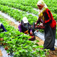 Kahramanmaraş, Türkoğlu İlçesi Murat Çakıroğlu ve Kaledibi Mahallelerinde geçen yıl Haziran ayında dikimi yapılan çilek fidelerinin hasadı yapılıyor, dekardan 3-4 ton ürün alan ve İstanbul’dan, Diyarbakır’a kadar sevkiyat gerçekleştiren çiftçilerde yüzler gülüyor.