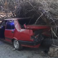 Kazada sürücü ile araçta bulunan Cuma Kılınç (32) ve Melih Gazicil (19) yaralandı.