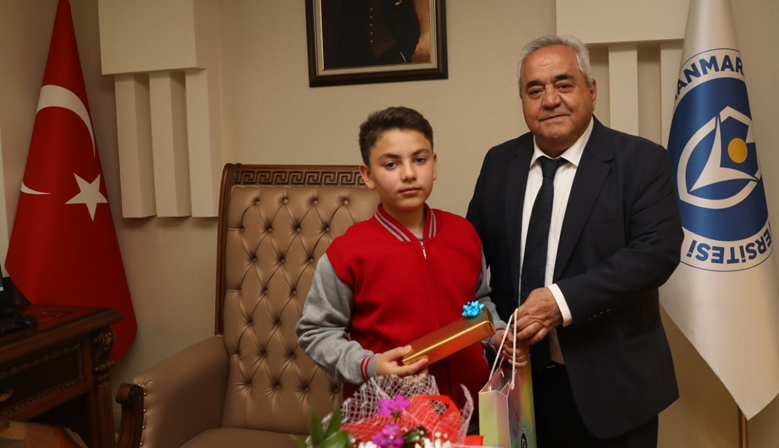 Kahramanmaraş İstiklal Üniversitesi Rektörü Prof. Dr. Sami Özgül, 23 Nisan Ulusal Egemenlik ve Çocuk Bayramı dolayısıyla Deniz Bitmiş Ortaokulu 5. Sınıf Öğrencisi Eyüp Purtaş’ı, konuk etti. Okul Müdür...