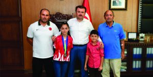 Ziyaretten duyduğu memnuniyeti dile getiren Başkan Erkoç, başarılarından dolayı Milli Yüzücü Sevilay Öztürk’ü tebrik ederek başarılarının devamını diledi.
